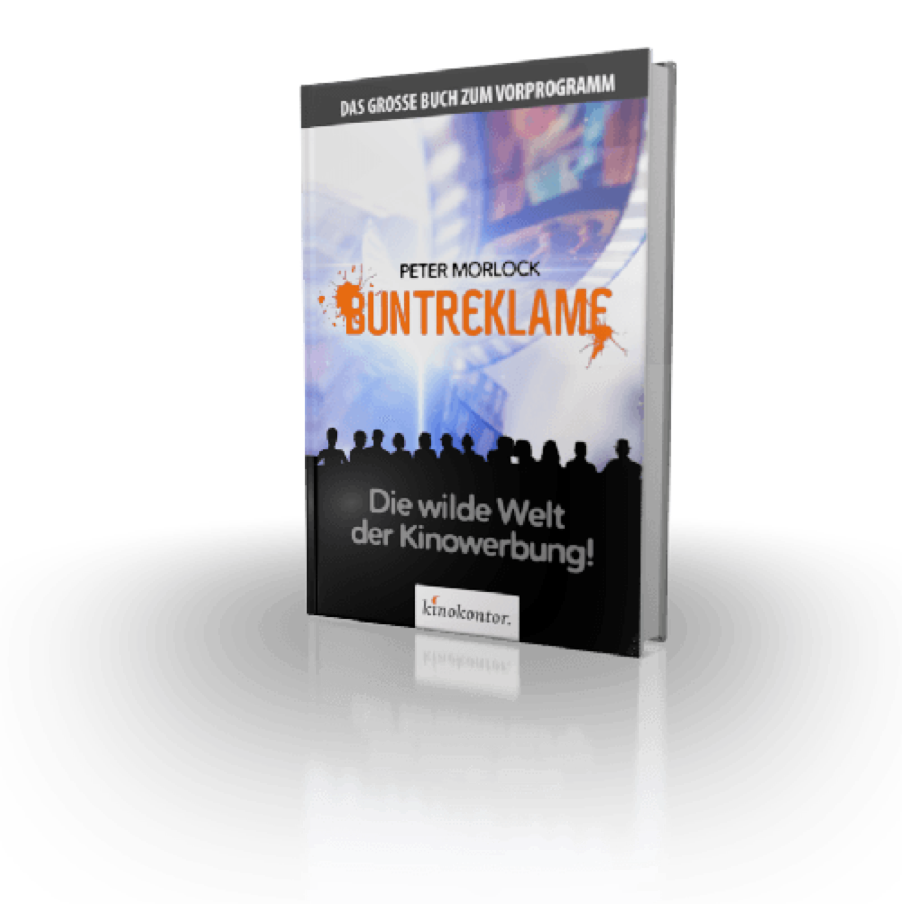 Die komplette wilde Welt der Kinowerbung lernen Sie in unserem Buch "Buntreklame" kennen. 182 Seiten vollgepackt mit Hintergrundinformationen, Werbephilosophie, allerhand Kuriositäten und jeder Menge praktischer Tipps zur Produktion und Schaltung, machen das Buch nicht nur für kinobegeisterte Leser, sondern auch für Werbekunden, Entscheider in Agenturen und Kinobetreiber interessant.